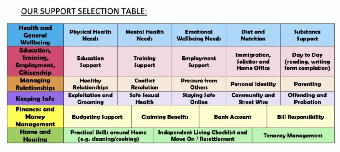 When a young person first joins us, we undertake an initial assessment as to ensure that we customise their support plan and subsequently ensure the development of their stability and independent living skills, as well as reducing any risky behaviour and identifying any concerns that may have been missed, at an early stage.
